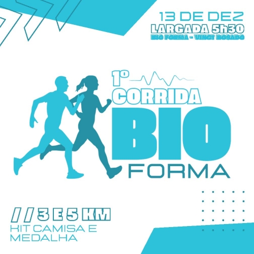 A 1ª CORRIDA ACADEMIA BIOFORMA será realizada no sábado, dia 13/12/2025, às 05:30 da manhã, em Mossoró-RN, sendo uma realização e Organização da Academia Bioforma.