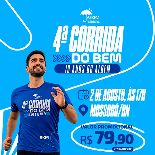A 4ª CORRIDA DO BEM será realizada no dia 02/08/2026, às 05:00 da manhã, em Mossoró-RN.